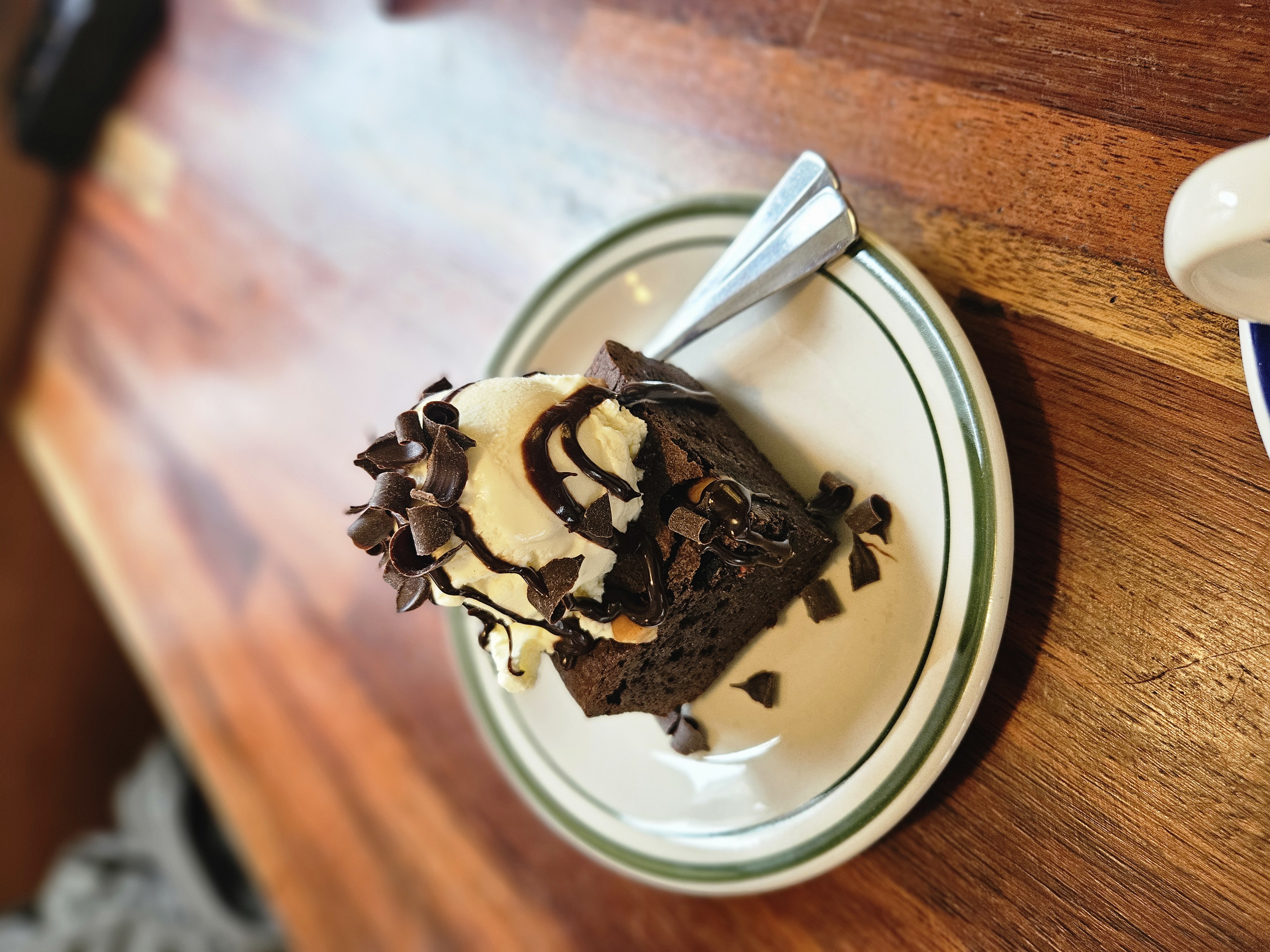 03. 우리가 주문한 커피와 아이스크림 올려진 브라우니